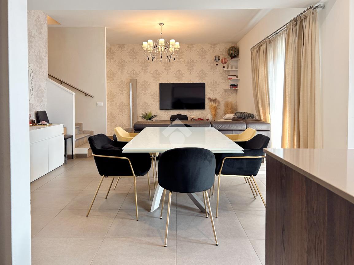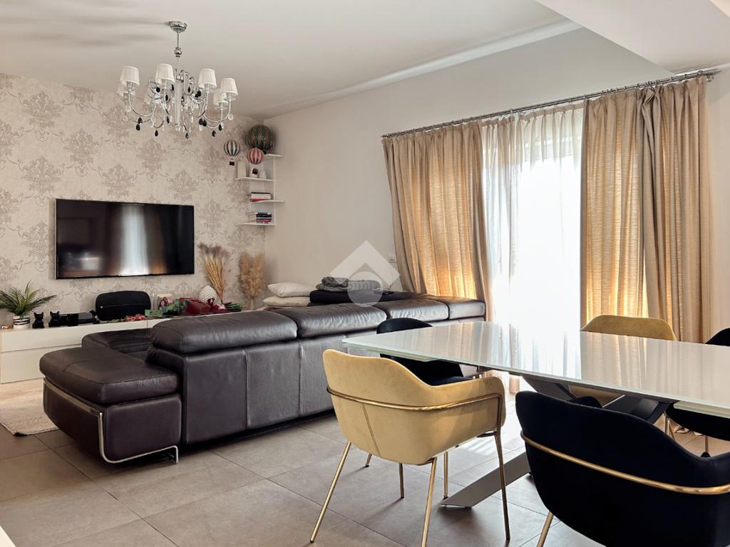 Dogana- In una posizione strategica, comoda a tutti i servizi principali, proponiamo in vendita un appartamento elegante e luminoso di 129 mq disposto su due livelli, caratterizzato da uno stile moderno e ricercato. Il piano principale ospita la zona giorno, ampia e ben organizzata, ideale per la vita quotidiana e per momenti di convivialità. Al piano superiore si sviluppa la zona notte, composta da tre camere da letto, di cui una attualmente utilizzata come cabina armadio, e due bagni, funzionali e ben rifiniti. La presenza di due balconi garantisce luminosità naturale e spazi esterni vivibili. Soluzione ideale per famiglie o per chi cerca una casa moderna, spaziosa e ben collegata, nel cuore di Dogana.